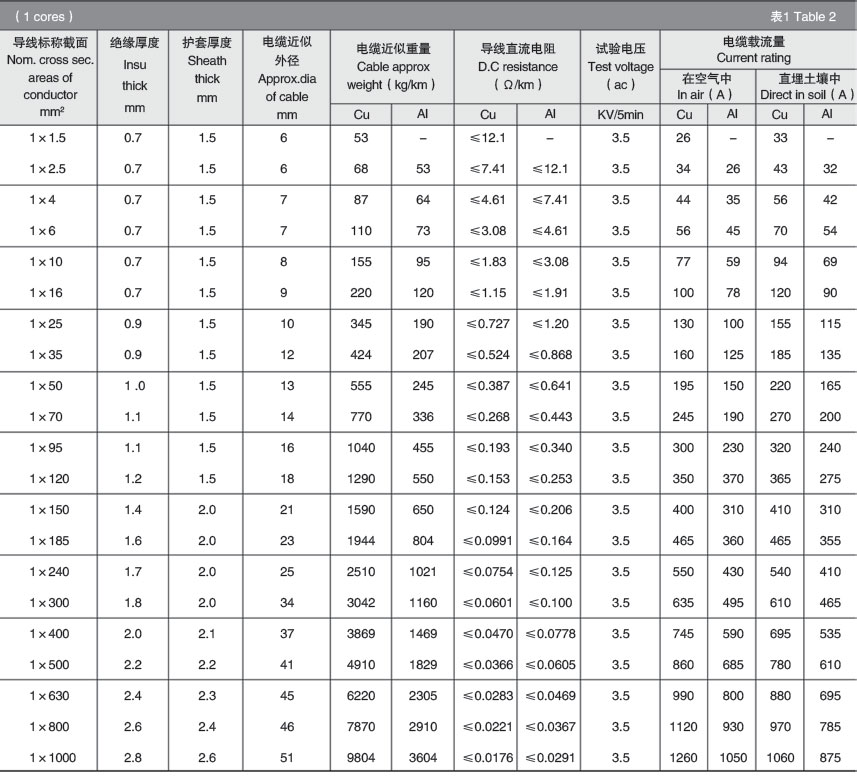 电缆用于额定电压0.6/1, 1.8/3, 3.6/6, 6/10, 8.7/10, 8.7/15,12/20, 21/35, 26/35kV输配电系统。