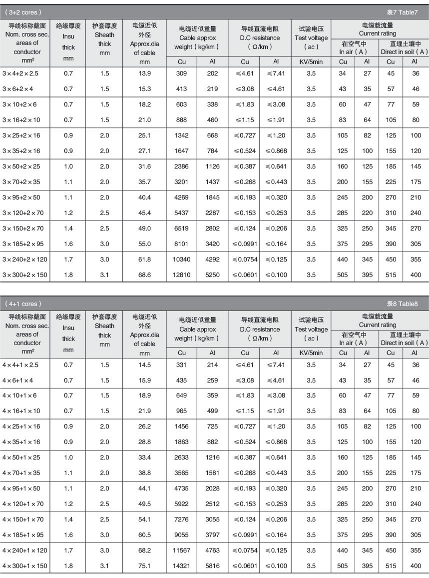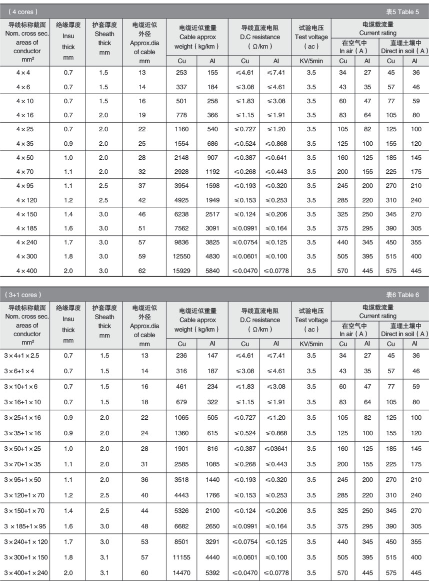 voltage of 0.6/1,1.8/3, 3.6/6, 6/10, 8.7/10, 8.7/15, 12/20, 21/35, 26/35kV.