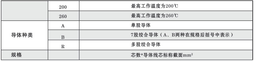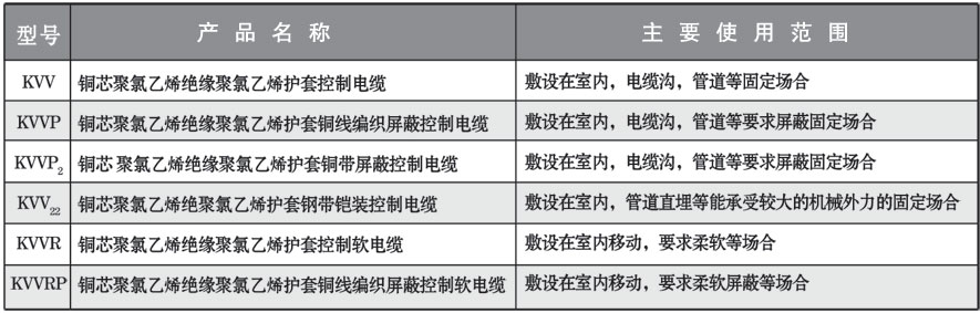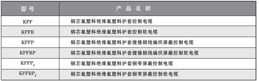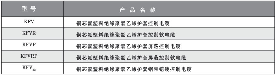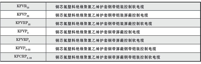 注:氟塑料绝缘和护套聚氯乙烯护套控制电缆在芯数多,截面大的情况下代替氟塑料绝缘和护套耐高温