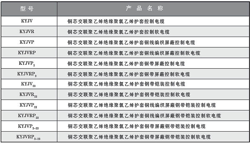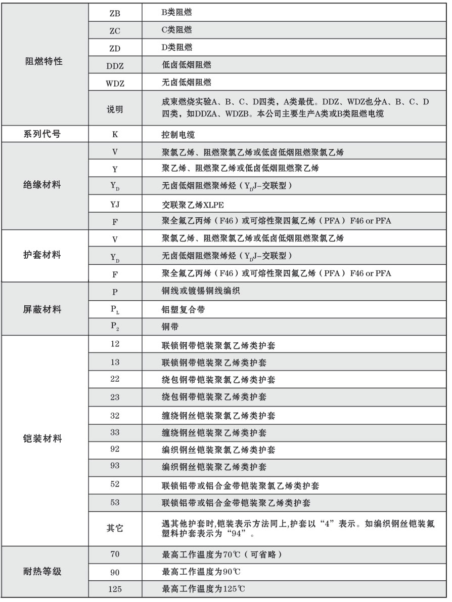 注:聚乙烯绝缘控制电缆以“Y”代替“YJ”即可。