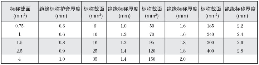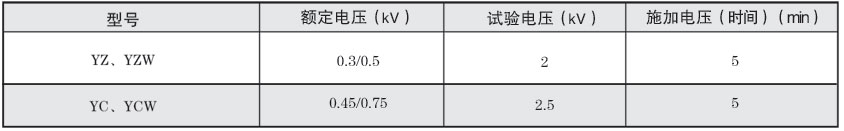 YZ、YZW、YC、YCW 橡套电缆绝缘厚度