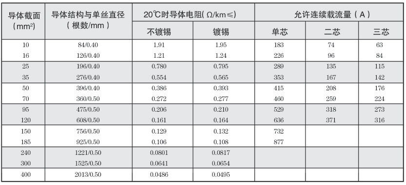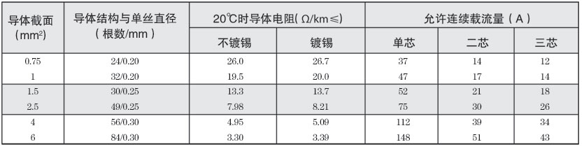 3.2  矿用电缆及通用橡套软电缆导体结构、导体电阻及允许载流量