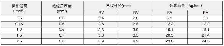 表 1 60227IEC01(BV) 60227IEC02(RV)