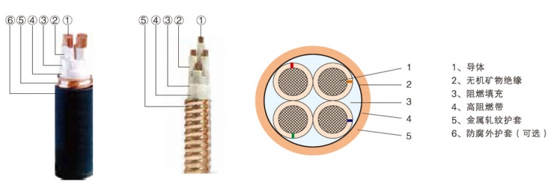 无机矿物绝缘电缆又称柔性防火电缆,其导体由多股铜线绞合而成,以多层云母带做绝缘层,云母带采用玻璃纤维布作 基料,外层采用铜带纵向包裏连续焊接将其封闭构成外护套,再将光滑的外护套压制成螺旋形。主要应用于办公室、酒店、 宾馆、会议中心等建筑行业:地铁、隧道、轻轨、医院等人员密集及地下场所:化工、冶金、电力、高温等工矿企业。