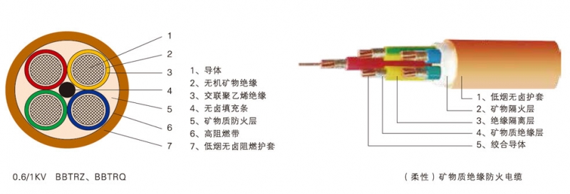 柔性矿物绝缘电缆防火电缆BBTRQ、BBTRZ。
